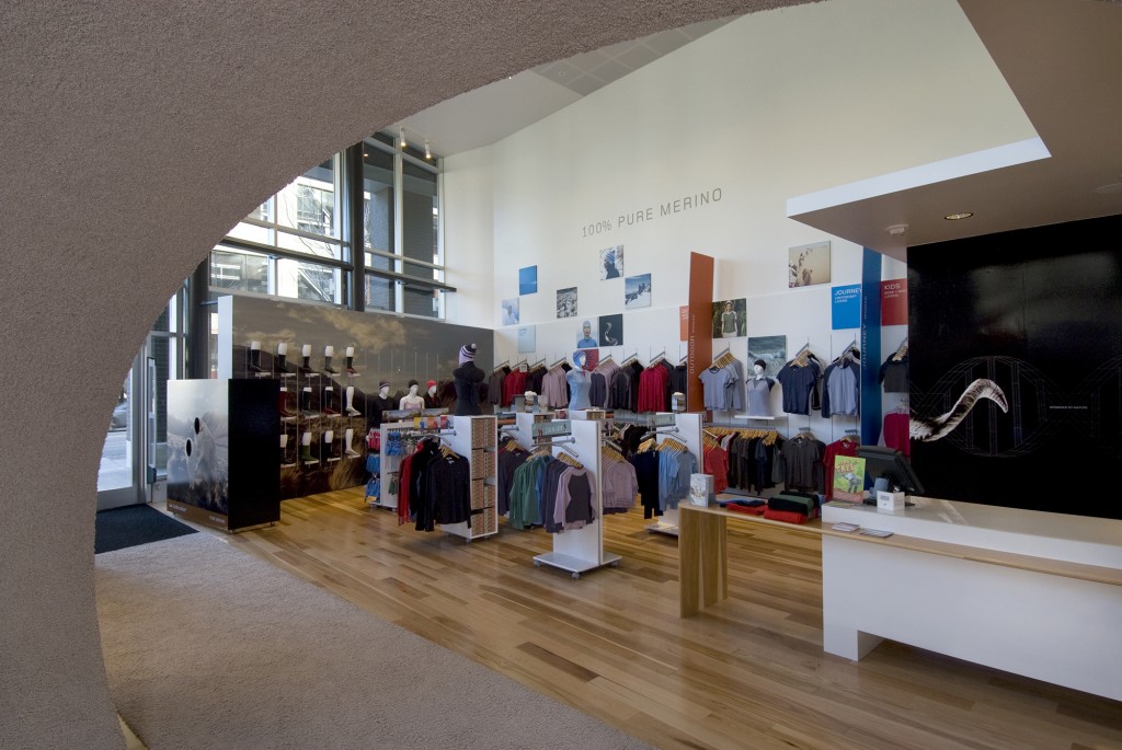 Vizwerks collaborated with Icebreaker, a New-Zealand based apparel company as well as the brand architect from New Zealand and local general contractor Lease Crutcher Lewis to extend the company’s core values within its first US store in Portland’s Pearl District, as well a new store in Montreal, Canada. Icebreaker creates and sells 100% Merino wool clothing and accessories for men, women and kids.
